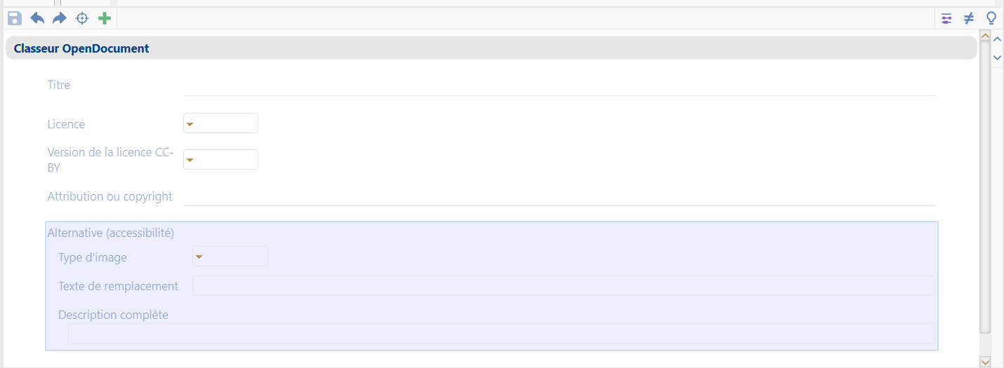Métadonnées qui doivent être renseignées afin d’avoir un classeur accessible, par exemple : titre, type d’image, texte de remplacement ou description complète.